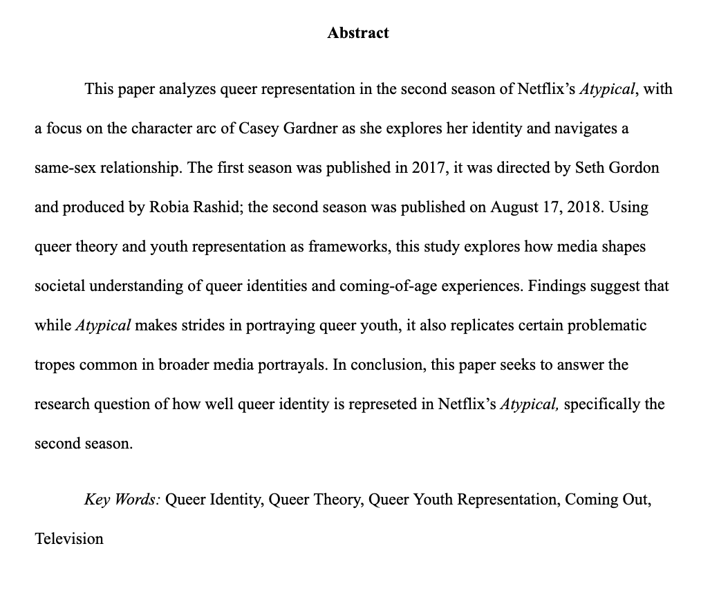 I completed an ideological textual analysis of the Netflix show Atypical (2017) using queer theory.